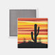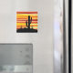 Abstract geometric desert sunset illustration with yellow, orange and red diagonal stripes and cactus decoration. Add your name/monogram or delete the text.