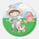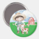 Magnet mit Junge, Kälbchen und roter Scheune auf der grünen Wiese. Erhältlich in drei Größen.