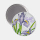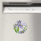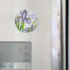 Iris watercolor magnet with quote from Emerson, "earth laughs in flowers"