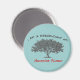 Ancestor - Descendant. Display your family name with a magnet. Curved text "I am a descendant of:" over oak tree. Ancestor name is entered in available template.