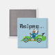 This 2" magnet shows a happy little race car driver. Makes a wonderful refrigerator magnet, shows a positive image of a kid living his dream of the need for speed. Be a winner.