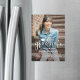 Share the joy of a high school or college graduation with modern custom photo magnetic announcements. The picture and wording on this template are simple to personalise, and the colours are easy to change with the Zazzle design tool. Include any details of your choice, such as party invitation info, special honours, degree title, favourite inspirational quote, graduate's contact info, or plans for the future. The magnetic backing makes these announcements easy for family and friends to display. The minimal overlay design features a mortar board cap, elegant script calligraphy, traditional typography, and one vertical photo of your choice, such as a senior picture or image from the commencement ceremony. This chic graduation card is a stylish way to announce a special day celebration. Congratulations to the graduate!