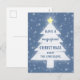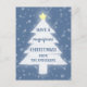 Blue and white Christmas tree with yellow star and snow falling. Easily change any of the text.