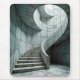 A grand spiral staircase made of marble elegantly rises, illuminated by light from above that accentuates its intricate design
