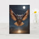 Majestic owl with his wings spread wide flying through the night with a full moon in the background.