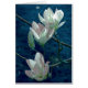 White magnolia on blue background.
