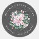 Magnolia and eucalyptus dark grey wedding flowers classic round sticker