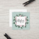 Elegant and impressive square business cards for beauty related professionals feature a watercolor mangnolia blossom frame illustration in green and pink and eucalyptus foliage, sourronding your name or business name on a solid sage green background. Add your full contact details and promo offer to the reverse side using the template.
