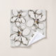 Magnolia flowers bath towel set in neutral beige-grey. A vintage drawing of the southern magnolia flower makes a big pattern on a set of three towels, or buy them separately. The hand towel contains a template for a monogram, which will print in the centre over a solid colour at the bottom. Makes a nice set for a guest bath.