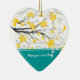 Magnolia branch and yellow flowers turquoise custom ornament.