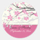 Magnolia branch pink wedding custom Save the Date sticker, featuring a beautiful magnolia branch with pink flowers and buds. Ivory, black, pink.
