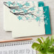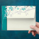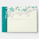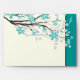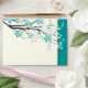 Magnolia branch turquoise wedding custom envelope, featuring a beautiful magnolia branch with turquoise flowers and buds. Ivory, turquoise, black, grey.
