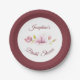 Magnolia Burgundy Floral Bridal Shower Paper Plate