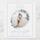 Rustic Chic Magnolia Floral with Dusty Blue Circle Framed Photo Save the Date Cards. This design is elegant, airy, and romantic. With faux metallic Blue foil text. Personalise it with your picture Wedding Save the Date custom photo cards!