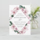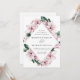 Elegant floral wedding invitations featuring your wedding details surrounded by a geometric frame of watercolor pink magnolia flowers and green eucalyptus leaves. The reverse side of the magnolia wedding invitations features a solid eucalyptus green background. Designed to coordinate with our Magnolia & Eucalyptus wedding collection.