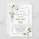 Magnolia Flowers Airy Greenery Gold Christening Invitation