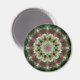This nature inspired design features a green and pink abstract kaleidoscope derived from a photograph of seed pods and leaves of the Southern Magnolia tree.