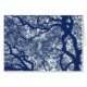 A photo of the branches and flowers of a Magnolia tree against the sky with a cyanotype effect.