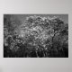 A black and white DSLR photo of a Magnolia tree in blossom.