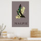 Magpie bird vintage Poster