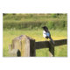 A European Magpie (Pica pica) standing on a wooden fence at The Rising Sun Country Park, Newcastle upon Tyne.