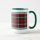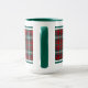 Coffee mug with the Maguire clan tartan, a classic plaid pattern in bright red and forest green, with royal blue, black, and creamy white accents. Fives styles available in two sizes.