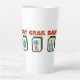 Fun latte mug design for Mahjong lovers features text and tile for each suit "Dot", "Crak" and "Bam"