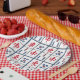 Mahjong Game Tiles Design Paper Plates with customisable background colour.