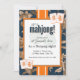 Looking for a unique Mahjong Party Invitation? This customizable template features a sophisticated navy and gold toile design, accented with classic Mahjong tiles in orange. Perfect for any Mahjong game night, tea party, or social gathering, this invite is easy to personalize with your specific event information. The elegant toile pattern provides a sophisticated backdrop, ensuring your guests receive a beautiful and memorable invitation. Get your custom toile Mahjong invitation today!