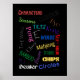 Colourful mahjong words set on a black background, measures 12" x 16"