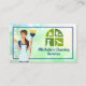 Maid Holding Broom | Soap Bubbles Business Card is for maids, janitors, home cleaners and those in the sanitising business industry.