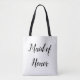 Maid of Honor, black, script, typography tote bag. Perfect for Bridal shower, bachelorette.