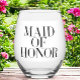Maid of Honour Black Modern Elegant Personalised Stemless Wine Glass