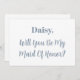 Simple, minimal, elegant design for asking "Will you be my maid of honour" with custom message and custom name text templates for you to customise!