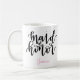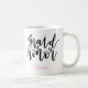 Maid of Honour coffee mug with black and pink calligraphy lettering. Personalise the name to customise. Modern lettering designed by Joy by Jess.