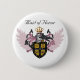This is a "Jolean" original, Maid of Honour Crest- Button. Created with the help of Dexteriti Digital Media. This beautiful crest (available on other bridal products as well) let's everyone know who your maid of honour is with a flash of brilliance and class. The crest features a ring, a cake, a gift box, and a bouquet, as well as wings and a crown on a beautiful coat of arms style crest. Everyone is sure to want to know where you found it and your Maid of Honour will truly be honoured.