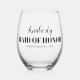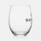 Maid of Honour name bblack typography wedding Stemless Wine Glass. Made with a touch of elegance, this glass showcases the name of your beloved maid of honour in stunning script typography, adding a personal and heartfelt touch to the occasion. The phrase "MAID OF HONOR" is boldly displayed in captivating typography, making it a standout piece. To commemorate the special day, the glass also includes the date of the wedding, creating a cherished keepsake that will forever remind your maid of honour of her important role in your journey to happily ever after.