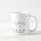 Maik spelled out in amino acids as M A I K (Methionine Alanine Isoleucine Lysine) on a mug for the scientist in you.