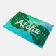 Island Green, Turq and Olive Green Colorway. The message of Aloha welcomes your visitors to your own tropical paradise. Hawaiian monstera leaves are often referred to as “elephant” leaves as their shape is reminiscent of an elephant’s ear. These gorgeous plants grow all over the islands and have become an important symbol used in Aloha shirts. Our design combines simple graphic elements with vibrant tie-died blended colours and distressing. This design comes in several colorways.