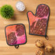 Maikai Hawaiian Monstera Leaf Tie-Dye Fuchsia Oven Mitt & Pot Holder Set