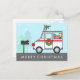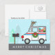A mail truck that's ready to spread holiday cheer throughout the neighbourhood. Gifts are loaded and ready to be delivered. A wreath hangs on the door. Silly reindeer antlers and red nose are fastened to the jeep. Personalise this card for the mailman or mail lady, it's a fun unique way to say thank you.