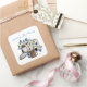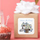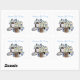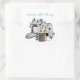 Stickers with an illustrated mailbox and custom text. Use as an envelope seal in size 3" or 1.5". Buy in bulk, or by the sheet. The mailbox is my own hand-drawn artwork. The mailbox door is open and letters can be seen inside. A pretty, blue-flowering vine climbs up the wooden post and wraps around the mailbox. Sample wording is, "Hello from - location" or personalise with a first name, family name, or short saying.