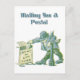 Funny postcard showing a drunk or inebriated man who thinks he's actually mailing a correspondence, but instead, he's putting the letter in the trash or garbage bin! His liquor is in his coat pocket, and he's supporting himself against a street pole.
