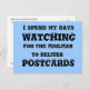 I Spend My Days Watching for the Mailman to Deliver Postcards. Back wishes many wonderful postcards for the receiver of the card.