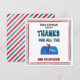Cheerful and Colorful Mail Box with block letters Thanks for all the mail and deliveries. Watercolor red and blue diagonal lines in the background. Customize and personalize card if you know their name.