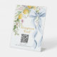 Invite guests to contribute with style using this Main Squeeze Honeymoon Fund QR Code Pedestal Sign, designed for lemon and citrus-themed bridal showers. Featuring soft watercolor lemons, delicate floral accents, and an elegant blue ribbon, this sign adds a refined yet cheerful touch to your gift or welcome table. Perfect for summer, garden, Mediterranean, or outdoor bridal showers, the clean layout ensures the QR code is easy to scan while maintaining a beautiful presentation. Ideal for modern couples, this pedestal sign coordinates seamlessly with the full She Found Her Main Squeeze collection. Fully customizable and thoughtfully designed, it blends practicality with timeless bridal elegance.