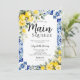 Main Squeeze lemon bridal shower invitation with blue tile design, citrus lemons, and floral details. Ideal for lemon themed bridal shower ideas, lemon and blue bridal shower theme, and Italian bridal shower celebrations.