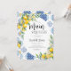 Lemon hues and party cues: a tale of love written in a lemonade stand or lemon trees grove with an Italian blue tiles backdrop. This invitation with a "She found her main squeeze" theme captures the essence of this sweet narrative, inviting you to celebrate the bride's discovery of love and a bright and sunny bridal shower theme. Explore a citrus themed bridal shower that radiates warmth and zest. A trendy and modern watercolor illustration of lemons and lemon branches, arranged in an oval frame, provides the backdrop for this elegant and chic citrus themed bridal shower brunch invitation that also features a watercolor Italian tile painting. Elegant calligraphy rounds up this unique design that is perfect for a spring or summer bridal shower, for a garden party, a festive indoors celebration or a low-key house party.