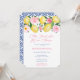 She's Found Her Main Squeeze! Celebrate with this pretty and fashionable invitations featuring vibrant watercolor lemons and glossy green leaves with pretty pink watercolor roses and peonies, complemented by cobalt blue and white tile reverse.