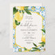 She found her main squeeze! Fun Bridal shower invitation featuring a blue mosaic border with watercolor greenery and lemons. Customise with your information for the bride to be. Matching items available in the Adore Paper Co. shop on Zazzle.
